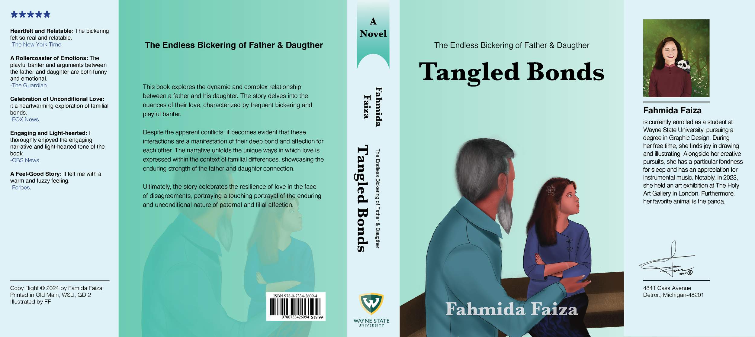 This is another academic warm-up project from my Graphic Design II class. The assignment was to imagine myself as a writer and publisher and create a book that I would publish. I chose to create an imaginary book titled "Tangled Bonds: The Endless Bickering of Father & Daughter." This book does not exist; it's a fictional concept I developed for this project.