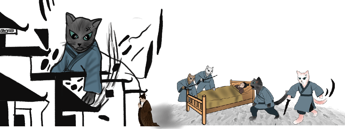 To complement the world-building, I collected artifact pieces like fabrics, patterns, and accessories for inspiration that reflect the luxurious lifestyle of the cat rulers while staying true to the traditional Chinese inspirations. The creative process started with extensive research and sketching. I explored different ideas for architecture, costumes, and patterns before finalizing the designs. Each sketch was a step closer to refining the visual identity of the Meow Dynasty.