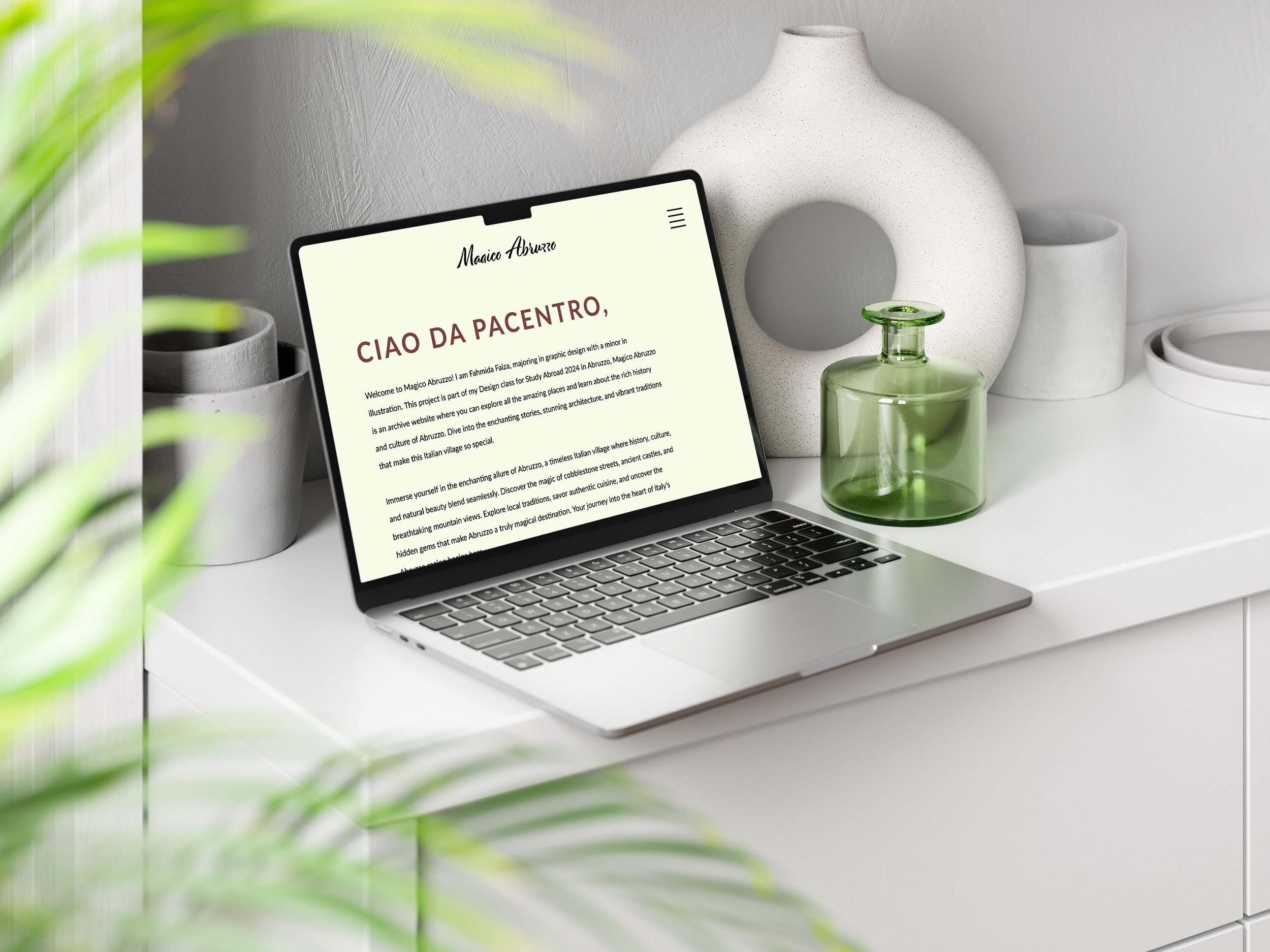 In designing the website for my project "Magico Abruzzo," I used colors drawn directly from the images, aiming to create an earthy vibe that reflects my experience of living surrounded by nature during my time in Abruzzo. The natural tones and elements bring the beauty of the region to life on the website, enhancing the immersive experience for users.