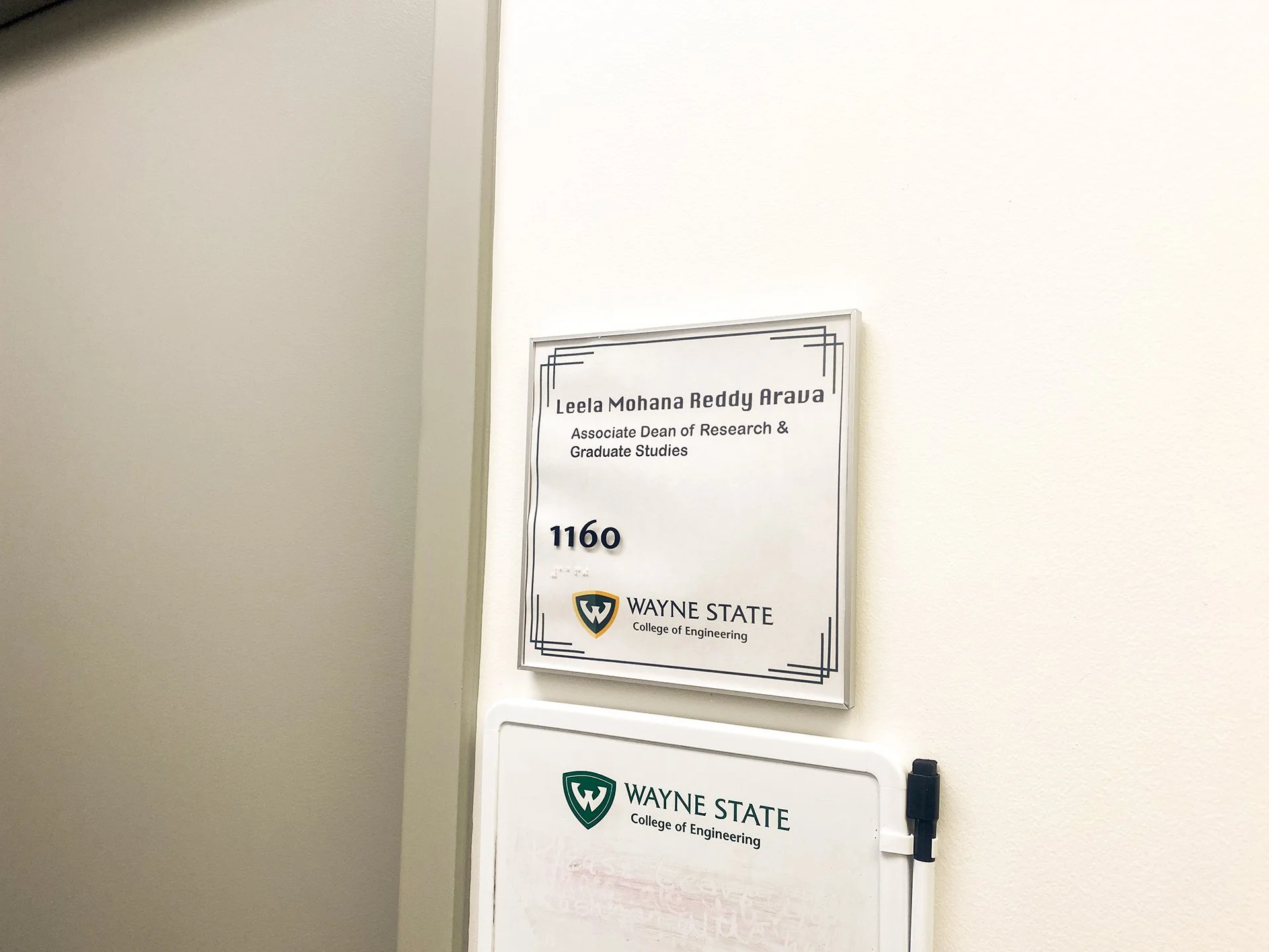 Produced over 20 office and room signage to ensure consistent branding and clear wayfinding within the College of Engineering. This included nameplates and room identifiers styled with the WSU brand.